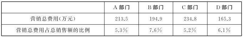【例题6】下表为某公司四个部门2009年全年的营销总费用,以及营销总费用占总销售额的比例。请问四个部门当中,哪个部门2009年全年的总销售额最高?( )